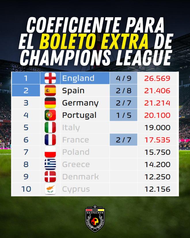 欧足联积分看的是本赛季+上赛季的欧战总积分,除以参赛球队数。不是看历史底蕴,就看这两年谁更能打。