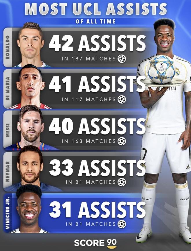 这份排名最核心的价值,恰恰证明了C罗被严重低估的全面性。数据最夸张的地方在于,他在主打抢点射门的前提下,居然顺手把助攻也刷到了历史第一。看看新一代的维尼修斯,23/24赛季他10场欧冠送出5次助攻拿下最佳球员,说明年轻巨星在效率上已达到极高水准。但想追平C罗的总量大山,光靠爆发力远远不够,还得在绞肉机般的欧冠赛场里巅峰不坠地再撑上十几年。