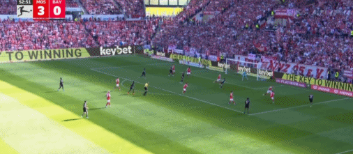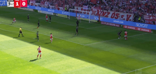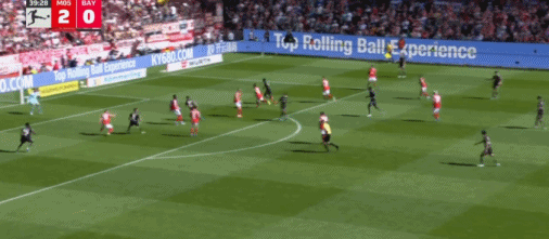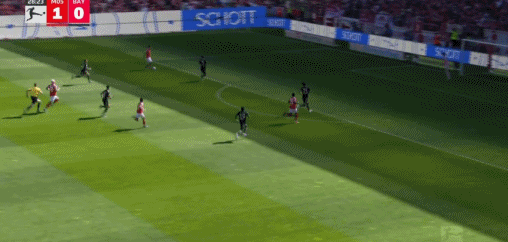 第53分钟,莱默尔传中,雅克松凌空抽射破门扳回一球,拜仁1-3美因茨