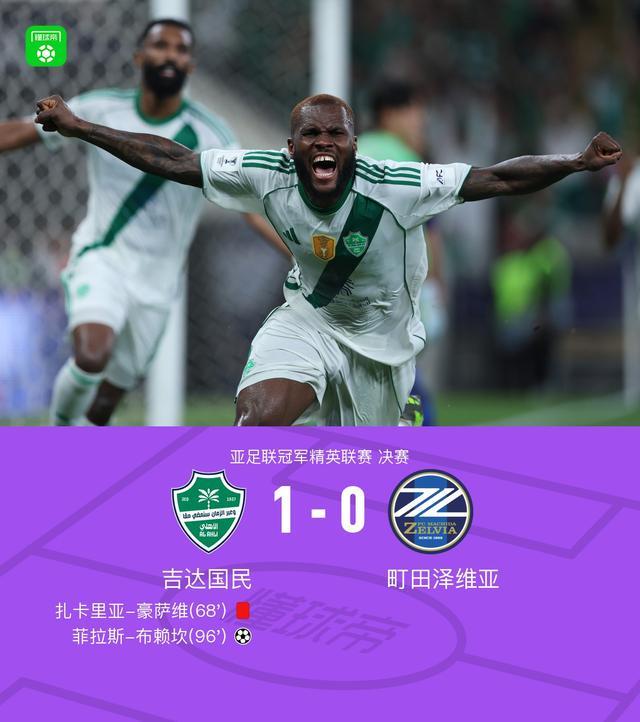 十人吉达国民1-0町田泽维亚卫冕亚冠精英冠军,布赖坎制胜